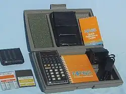 La première calculatrice programmable à carte magnétique est mise sur le marché par Hewlett-Packard en 1975 : c'est le modèle HP-65, qui est également une calculatrice scientifique. Elle est suivie par la SR 52 en 1975[1]. On entend décrire par le qualificatif de programmable une machine capable de contenir dans une mémoire autonome une suite d’instructions composant un programme et exécutable sur demande. Les premiers modèles commercialisés par HP sont novateurs car leur dispositif d'enregistrement par cartes magnétiques autorise la sauvegarde mais aussi l'échange de programmes.
