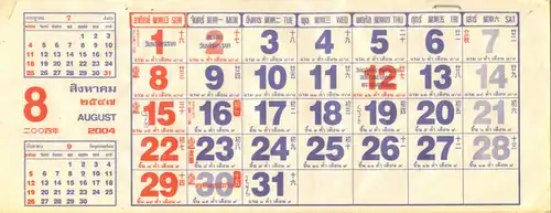 - et le calendrier lunaire thaïlandais (une version du calendrier bouddhique, techniquement un calendrier luni-solaire) qui est utilisé exceptionnellement pour les événements traditionnels et les pratiques religieuses bouddhistes.