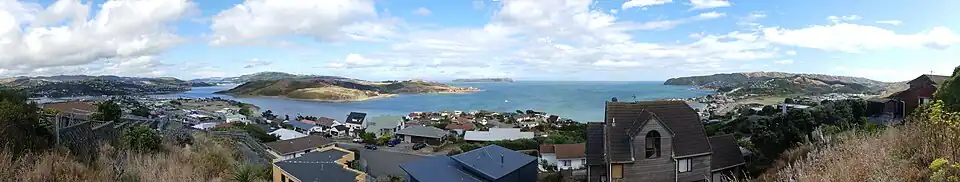 La majeure partie de la ville se trouve à quelques pas de la crique et de nombreuses maisons offrent une vue sur les collines voisines, la mer et l'île Mana.
