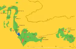 Les troupes italiennes capturent Ghat dans le sud-ouest de la province en août 1914, ce qui provoque une révolte et force les Italiens à quitter Ghat et Ghadamès. L'appel au jihad a plus d'effet parmi les Senoussis qu'ailleurs et Ahmad commence le jihad dans le Fezzan, dans le sud de la Libye. Les Italiens reprennent Ghadamès en février 1916, mais le blocus des Senoussis a peu d'effet militaire, car ils sont bien approvisionnés en armes italiennes capturées ; les garnisons italiennes en Cyrénaïque sont retirées pour renforcer l'ouest. Les opérations ottomanes et allemandes en Tripolitaine sont basées à Misratah, où un sous-marin visite toutes les quelques semaines pour livrer des armes et des munitions et en mai 1917, une station sans fil est construite. Les troupes ottomanes établissent une vingtaine de postes sur la côte et d'ici 1918, ont 20 000 soldats réguliers, un nombre similaire en formation et 40 000 réservistes non formés supplémentaires[50]. n septembre 1918, ayant été empêché d'entrer en Tripolitaine par les forces ottomanes, Sayed Ahmed embarque à bord d'un sous-marin allemand à al-Aqaila et part en exil en Turquie. En Tripolitaine, les troupes locales sous le commandement d'al-Shtaiwi et les soldats réguliers ottomans sous Nuri Bey et Suliman al-Baruni résistent aux Italiens jusqu'à la fin de la guerre[51]. L'analyse archéologique de la saline de Kallaya, le site d'une escarmouche mineure entre les Libyens le 14 novembre 1918, montre qu'ils disposent de fusils russes capturés par les Allemands et les Austro-Hongrois sur le front oriental et envoyés en Libye via les Ottomans[52].
