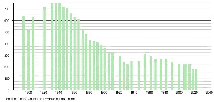 - ↑ Fiches Insee - Populations de référence de la commune pour les années 2006, 2007, 2008, 2009, 2010, 2011, 2012, 2013, 2014, 2015, 2016, 2017, 2018, 2019, 2020, 2021 et 2022.