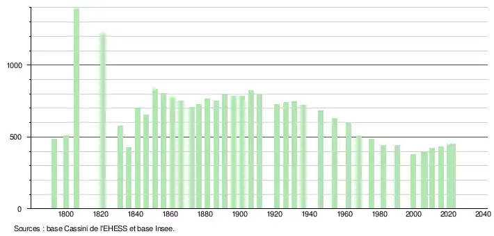 450 hab. (2022 en évolution de +4,41 % par rapport à 2016)