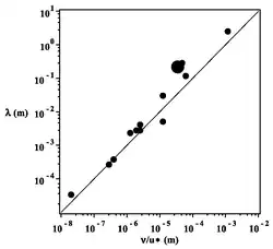 Les dimensions vont de la fraction de millimètre à plus de un mètre. Il existe une corrélation forte entre la période λ du motif géométrique et la quantité où ν est la viscosité cinématique du fluide et u* la vitesse de frottement[4]. Cette quantité est proportionnelle à la taille de la couche visqueuse dans un écoulement turbulent. En introduisant le nombre d'onde on obtient la corrélation .