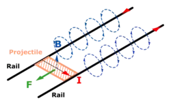 Le concept consiste à établir une différence de potentiel électrique entre deux rails parallèles conducteurs de l'électricité et à insérer entre eux un projectile conducteur pouvant glisser ou rouler dessus, en faisant contact. Dès que le contact a lieu, un courant électrique circule entre les deux rails, un champ magnétique naît et le projectile est accéléré par la force de Laplace (interaction entre le courant qui circule dans le projectile et le champ magnétique créé).