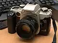 Il s'agit d'un reflex de format 35 mm doté de trois collimateurs autofocus, d'un illuminateur de mise au point, d'une cellule d'analyse de la lumière à six zones, et d'un flash intégré escamotable.