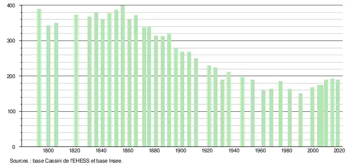 - ↑ Fiches Insee - Populations de référence de la commune pour les années 2006, 2007, 2008, 2009, 2010, 2011, 2012, 2013, 2014, 2015, 2016, 2017 et 2018.