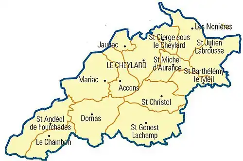Le canton du Cheylard regroupait quatorze communes.