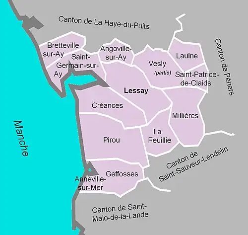 - ↑ Liste des communes du canton de Lessay sur le site de l'Insee, consulté le 19 janvier 2015.