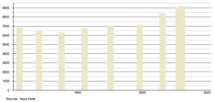 (Sources : Base Insee, population sans doubles comptes à partir de 1962[12] puis population municipale à partir de 2006[13])