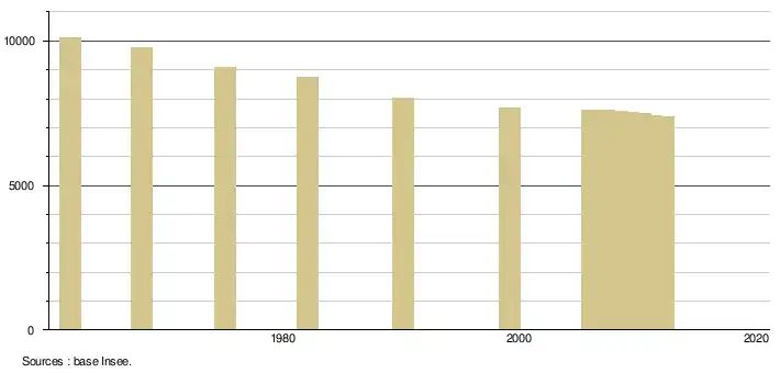 - ↑ Population selon le sexe et l'âge quinquennal de 1968 à 2013 - Recensements harmonisés - Séries départementales et communales