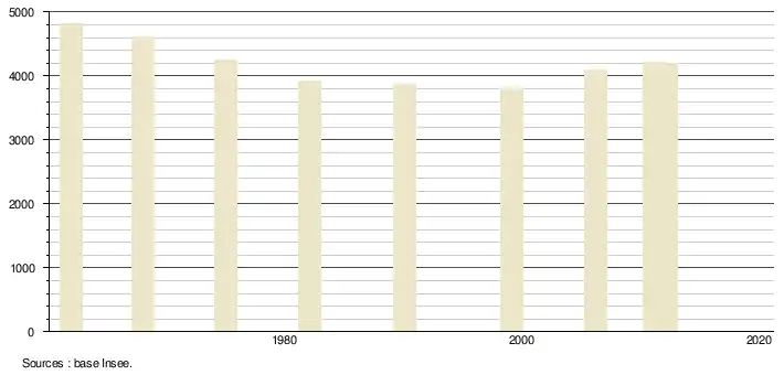 (Sources : Base Insee, population sans doubles comptes à partir de 1962[13] puis population municipale à partir de 2006[14])