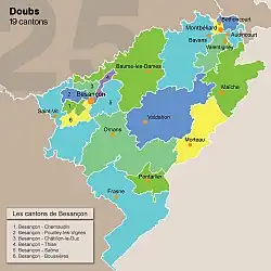 - arrondissement de Besançon (15 cantons - préfecture : Besançon) :