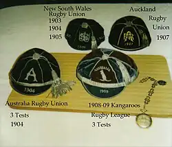 La cape exposée au musée anglais du rugby à Twickenham est celle d'Arthur Guillemard[réf. souhaitée], membre fondateur de la fédération anglaise dont il devient président, qui a joué, avec l'équipe d'Angleterre, le premier match international de rugby entre l'équipe d'Écosse et l'équipe d'Angleterre le [2].
