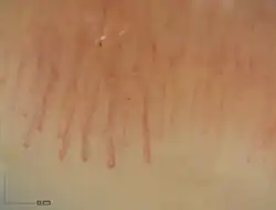 Cet examen consiste à observer la peau du rebord de l'ongle. Ainsi, il permet d'étudier l'aspect des capillaires sanguins (petites artères microscopiques) du pourtour de l'ongle.