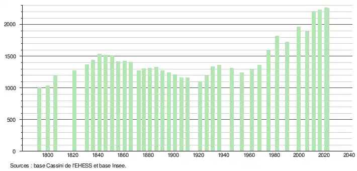 2 259 hab. (2022 en évolution de +1,16 % par rapport à 2016)