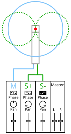 La radio stéréophonique transmet le signal sous la forme d'un signal monophonique, et d'un signal de différence entre canaux, qui s'ajoute à gauche et se retranche à droite. La prise de son MS utilise le même principe dès la captation. Une capsule cardioïde ou omnidirectionnelle est pointée vers le centre de la scène sonore, une deuxième capsule, à directivité en 8, est placée perpendiculairement aussi près de la première que possible.