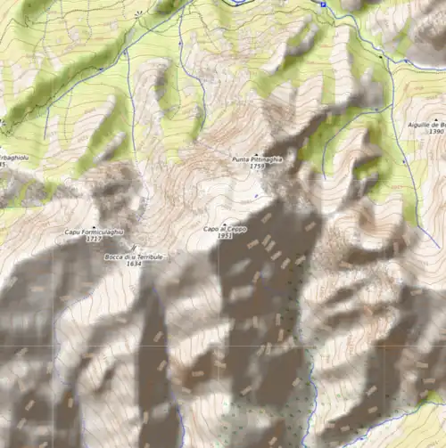 - à l'est : Capu di Meta di Filu (1 819 m), Capu Penne Rosse (1 992 m) et A Muvralla (2 148 m).