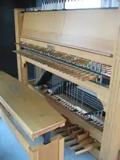 Dans d'autres cas, il les accroche à ses coudes, ses genoux et ses pieds et en manipule deux autres à la main, puis, assis sur un banc, il carillonne par de grands gestes coordonnés (usage répandu également dans les églises orthodoxes). Il existe tout de même des carillons de taille modeste, mais étant confectionnés comme les instruments de 23 cloches et plus, avec clavier, pédalier, etc.