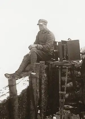 En 1916, il est le premier opérateur de l'équipe photographique de montagne de la quatrième armée, avec laquelle il a construit 75 stations photographiques à haute altitude, à partir desquelles il a filmé de grandes régions des Alpes. Il documente la vie dans les tranchées et les phases cruciales de la guerre. Ses photographies qui témoignent de la présence de personnalités importantes sur le front, de la reddition des Autrichiens à Villa Giusti, de l'entrée des troupes italiennes à Trente et de l'arrivée de Victor-Emmanuel III à Trieste.