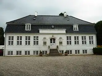 Le corps de logis est long de onze travées et se compose d'une cave haute, d'un bel étage et d'un toit à croupe mansardé en tuiles vernissées bleues. Le risalit médian à trois travées a été adapté en 1893. Les deux fenêtres qui flanquaient l'entrée principale ont été remplacées en 1894 par des niches avec des vases en grès. La cartouche de style rococo au-dessus de l'entrée principale et l'attique néclassique ont également été ajoutées alors. La combinaison d'éléments décoratifs de différents styles architecturaux est une caractéristique du style historiciste qui dominait l'architecture danoise à l’époque.