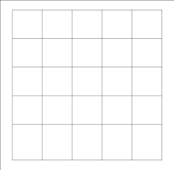 Les 25 lettres de cette phrase de cinq mots, ici inscrites dans un quadrillage, lues de n'importe quel coin à son opposé, forment un palindrome. Chacun des cinq mots est répété quatre fois dans ce carré, de gauche à droite, de droite à gauche, de haut en bas et de bas en haut.