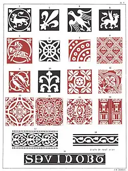 - ↑ Alfred Ramé, Études sur les carrelages historiés du XIIe au XVIIe siècle en France et en Angleterre. 1857 Consulter en ligne