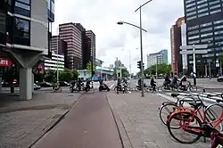 Une intersection protégée à Rotterdam aux Pays-Bas. Une manière sûre de traverser sur un vélo.