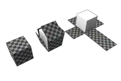 Représentation de la cartographie UV d'un cube. Le patron peut ensuite être texturé pour texturer le cube.