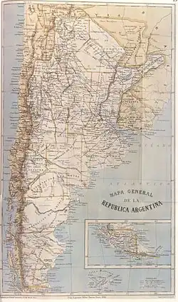 Le géographe péruvien Mariano Felipe Paz Soldán, qui avait cherché refuge à Buenos Aires pendant la désastreuse guerre du Pacifique entre le Pérou et le Chili, dessina en 1888, entre autres, deux cartes de l'Argentine :