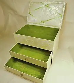 Cette activité de loisirs réside dans le fait de fabriquer des objets utiles et décoratifs, le plus souvent sous forme de boites. La matière première reste le carton mais il est décoré avec des tissus ou papiers de plus en plus fantaisie ou sophistiqués. Dans les années 1970, il était enseigné dans les cours de travaux manuels dispensés au collège par exemple.