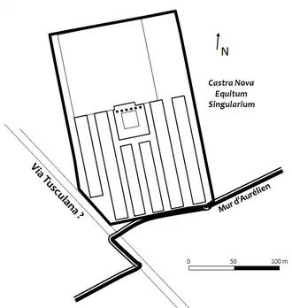 La seconde caserne (Castra Nova Severiana Equitum Singularium) est construite sous le règne de l'empereur Septime Sévère lorsqu'il augmente les effectifs, qui passent de 1 500 à 2 000 hommes, en 193 apr. J.-C.[4] La première caserne continue d'abriter les 1 500 hommes de la garde initiale.