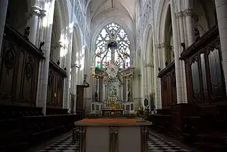 En 1722 eut lieu la construction des chapelles du bas-côté nord, et dans la seconde moitié du XVIIIe siècle, on procéda à la construction du maître-autel à baldaquin, à l'installation des stalles actuelles dues au sculpteur germano-angevin Sébastien Leysner[5] et au placement des boiseries.