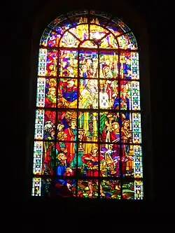 Les vitraux et verrières de la cathédrale sont réalisés par le maître-verrier nancéien Jean-Jacques Grüber, pour remplacer ceux pulvérisés par les bombardements allemands de la Première Guerre mondiale[5]. Un vitrail situé dans le transept occidental et réalisé de 1927 à 1934, illustre la consécration de la cathédrale par le pape Eugène III le [7],[22].