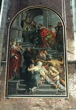 En 1566, des iconoclastes détruisirent les vitraux offerts par Charles Quint, Marie de Hongrie et Philippe II.