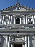 Façade de la cathédrale, rappelant le style jésuite | ||
