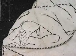 La technique des artistes des premiers panneaux était celle de la gravure dans le marbre noir par des trous et des lignes remplis d'un niellage de bitume, puis de la marqueterie de minéraux de couleur blanche, verte, rouge ou bleue.