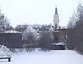 Un clocher séparé est construit à la même époque. La première cloche, apportée par Jacob De La Gardie, est un butin de guerre de Novgorod où elle a été jetée en 1175[2].