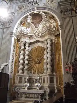 Deux autres autels sont placés sur les côtés ; le premier est dédiée au Nom de Jésus et le second au Nom de Marie. Ce sont des projets de l'architecte baroque Giuseppe Pozzo, actif entre la fin du XVIIe et le milieu du XVIIIe siècle. Les anges sont l'œuvre d'Orazio Marinali.