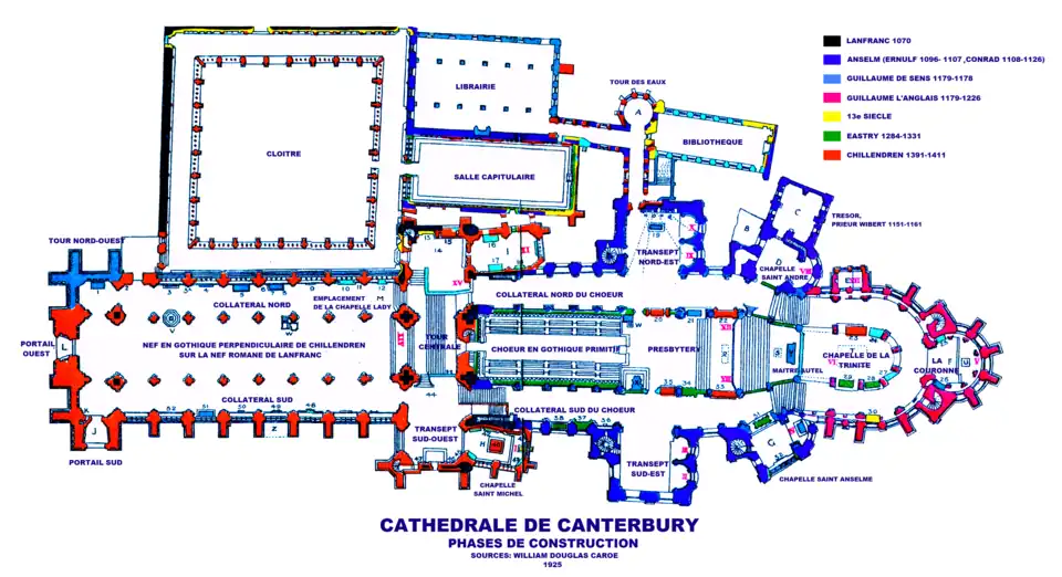 - ↑ Anne Prache, « Les premières campagnes gothiques de la cathédrale de Canterbury », Bulletin Monumental, vol. 142, no 2, , p. 198 (lire en ligne).