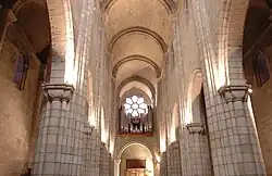 L’intérieur a également pris une allure baroque au fil des modifications de l'édifice. La chapelle donnant dans le transept gauche contient un autel dont le retable est d’argent ciselé datant du XVIIe siècle. Toujours au XVIIe siècle, l’abside et son déambulatoire de style roman furent remplacés par un autre au goût du jour qui fut orné de peintures.