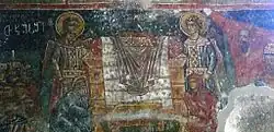 L'église est située à flanc de montagne et est une église à nef unique, sans clocher. L'intérieur comporte des restes de fresques des XIVe et XVe siècles. À l'extérieur le mur est est décoré d'ornementations sculptées en forme de croix.
