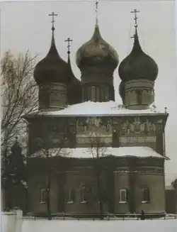 La cathédrale de la Dormition (en russe : Успенский собор, Ouspenski sobor, d'après le nom de la fête de la « Dormition de la Très Sainte Mère de Dieu », célébrée le 15 août et que les catholiques appellent aussi « Assomption ») est une cathédrale orthodoxe située à Iaroslavl, ville de l'Anneau d'or de Russie et dont le centre historique est classé patrimoine mondial par l'Unesco depuis 2005[1]. Elle fut édifiée au confluent de deux cours d'eau : la Volga et le Kotorosl. Entre la première construction en 1215 et sa destruction totale en 1937, elle fut restaurée et même reconstruite plusieurs fois : la première au début du XVIe siècle, et plus tard encore, au milieu du XVIIe siècle. Depuis 2004, à l'emplacement de l'édifice primitif, s'élève une église nouvelle, reconstruite avec des proportions plus grandes que la précédente.