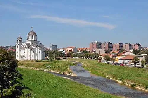 La cathédrale est située à la confluence de la rivière Gradac et de la Kolubara[1], un affluent droit de la Save.