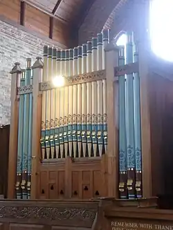Un détail particulier est que les vingt tuyaux de façade (tuyaux « de montre ») sont peints, ce que l'on retrouve assez souvent en Angleterre.