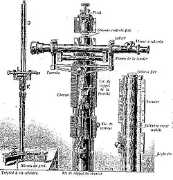 Un cathétomètre est un instrument d'optique permettant des visées précises[1]. Il permet de mesurer la distance verticale entre deux points. Il était utilisé en particulier en travaux publics pour mesurer la flèche de certains éléments (poutre…).