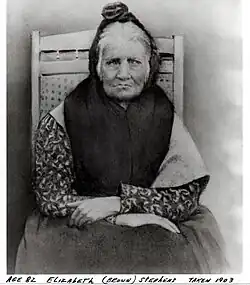 Elizabeth Brown Stephens, Indienne Cherokee, survivante de la Piste des larmes, photographiée en 1903.