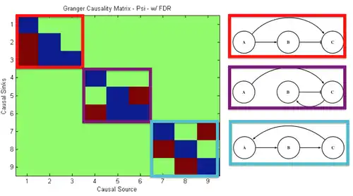 Toutefois, l'idée de base de la causalité au sens de Granger est qu'une série temporelle causerait une autre série , lorsque la connaissance du passé de entraîne une prévision de distincte de celle fondée uniquement sur le passé de . Autrement dit, une série chronologique cause au sens de Granger une autre série , si conditionnée aux valeurs passées de l'erreur quadratique moyenne de prédiction de est inférieure par rapport à celle où les informations relatives aux valeurs passées de étaient omises. Mathématiquement :