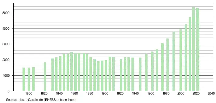 - ↑ Population municipale de référence en vigueur au 1er janvier 2025, millésimée 2022, définie dans les limites territoriales en vigueur au 1er janvier 2024, date de référence statistique : 1er janvier 2022.