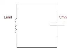 Les cavités résonantes micro-ondes peuvent être représentées et considérées comme de simples circuits LC, voir les pages de Montgomery et al. 207-239[15]. Pour une cavité micro-ondes, l'énergie électrique stockée est égale à l'énergie magnétique stockée à la résonance comme c'est le cas pour un circuit LC résonant. En termes d'inductance et de capacité, la fréquence de résonance pour un mode donné peut être écrite comme indiqué dans Montgomery et al page 209[15]