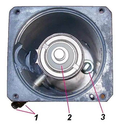 (2) Le haut de la triode GS13-1 (russe : ГС-13-1[1]) qui génère les micro-ondes ;